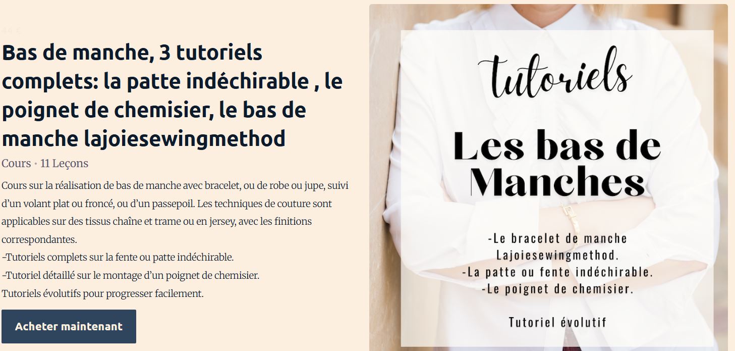 Pour ce faire, j’ai utilisé la technique proposée par Rachel alias Rachel Lajoie Sewing Method. J’avais acheté son cours en prévente et donc en promotion (aujourd’hui il est à 44€). Deux nouvelles vidéos bonus ont depuis été ajoutés à la formation (sans coût supplémentaire), ce qui rend son cours vraiment précieux car il évolue au fur et à mesure du temps. J’ai particulièrement aimé sa nouvelle vidéo : « quelle taille pour un poignet de chemisier ? » Rachel nous explique en effet comment avoir une longueur de poignet qui soit sur-mesure. J’ai bien aimé sa technique. Testée et approuvée donc !