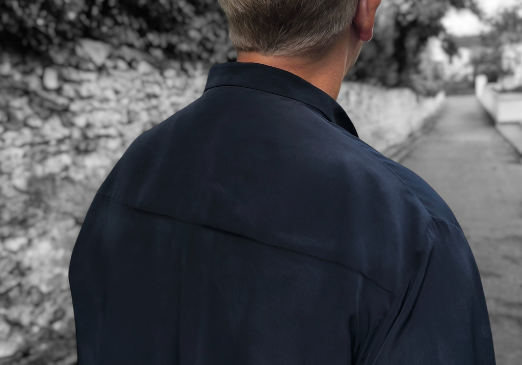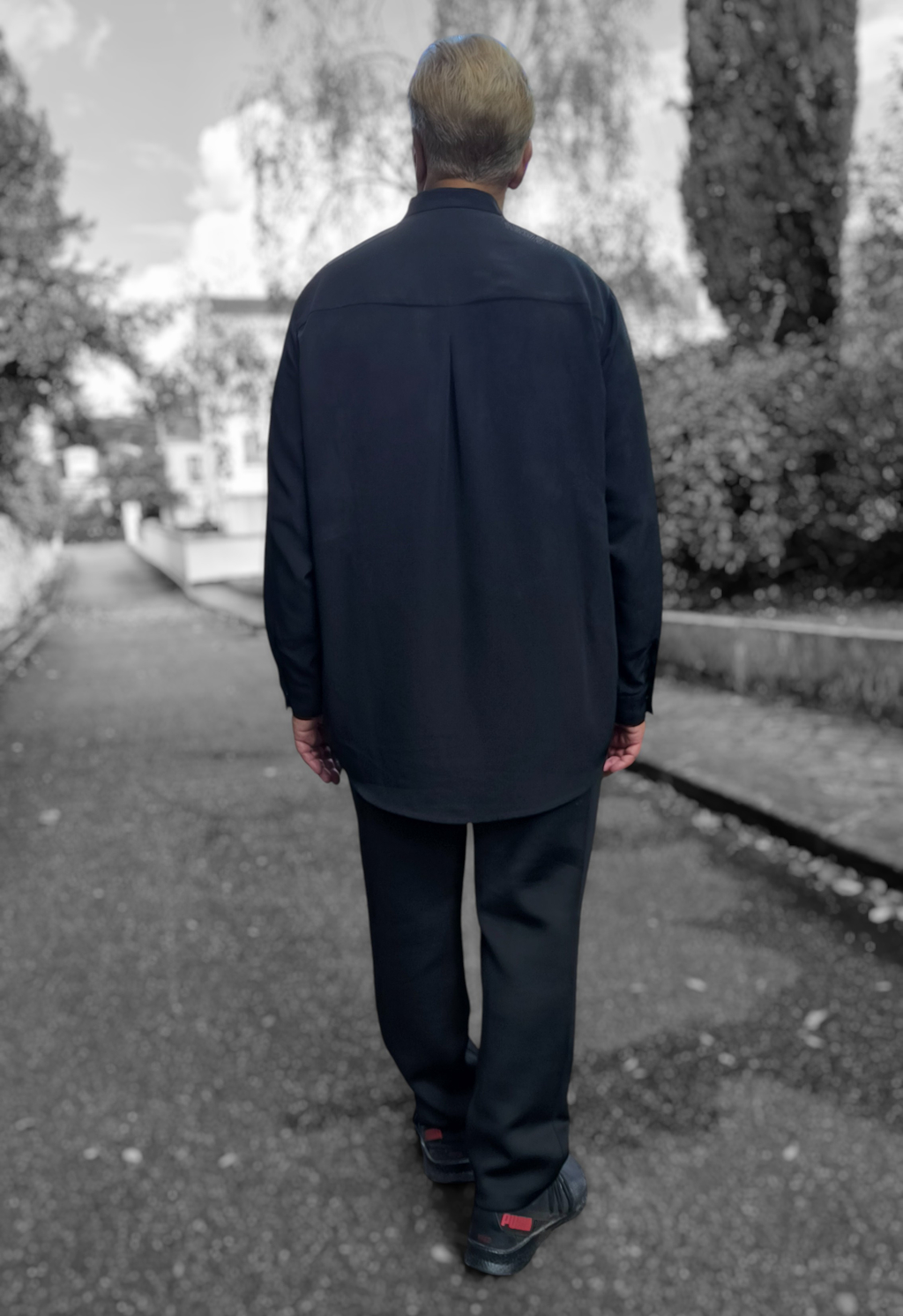 Cette chemise, je l’ai donc pas mal modifiée pour qu’elle s’adapte à la morphologie de mon mari. J’avais pris à l’époque la plus grande taille (54) que j’avais pas mal élargie au niveau des coutures latérales et des manches pour répondre aussi aux exigences de mon mari qui souhaitait porter une chemise ample et confortable ! Exit ensuite le plastron au devant parce que mon mari préfère définitivement les chemises classiques avec patte de boutonnage au devant & manches longues. Pour parfaire les choses, j’ai également ajouté un empiècement au dos.