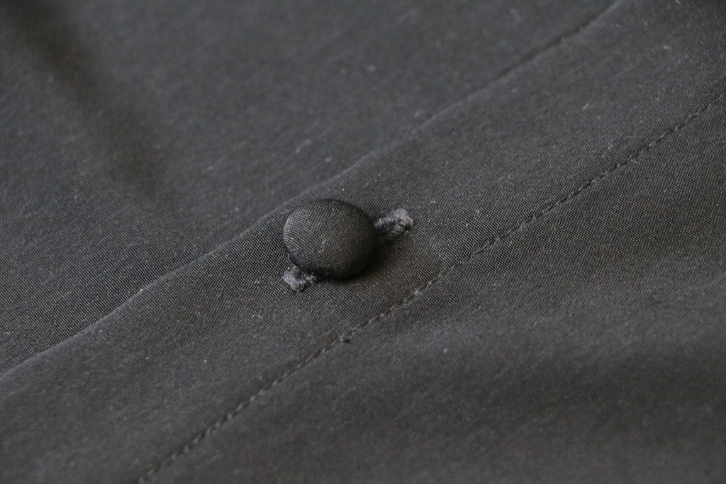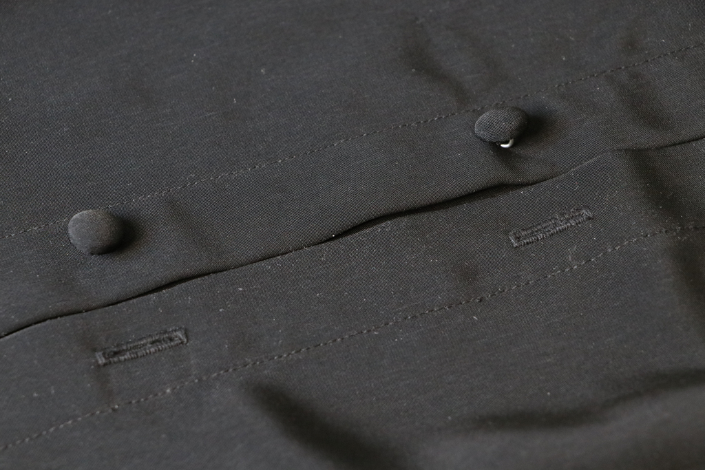Les pattes de boutonnage sont à même et pour les boutons, j’ai opté pour des boutons recouverts dans le même tissu.