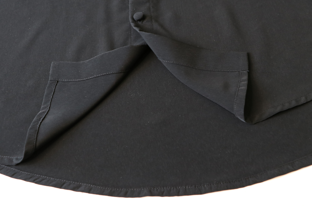 Cette chemise est de forme légèrement liquette : le bas est arrondi.