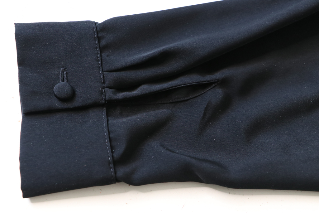 La 3ème, à nouveau patte de boutonnage et poignets avec fentes indéchirables :