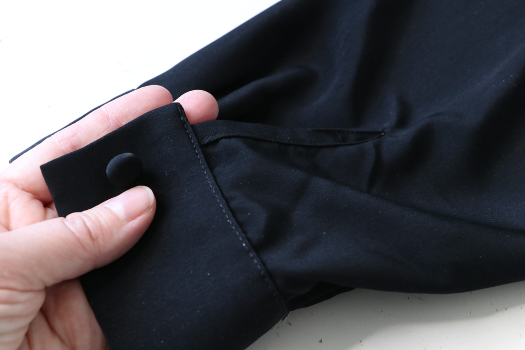 J’ai ensuite opté pour des manches longues. J’ai fini les manches par des fentes indéchirables & des poignets boutonnés.