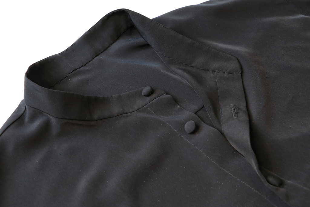 Comme le prévoit le patron, l’encolure est finie par un col mao. Mon mari n’aime et ne porte quasi que ce genre de col.
