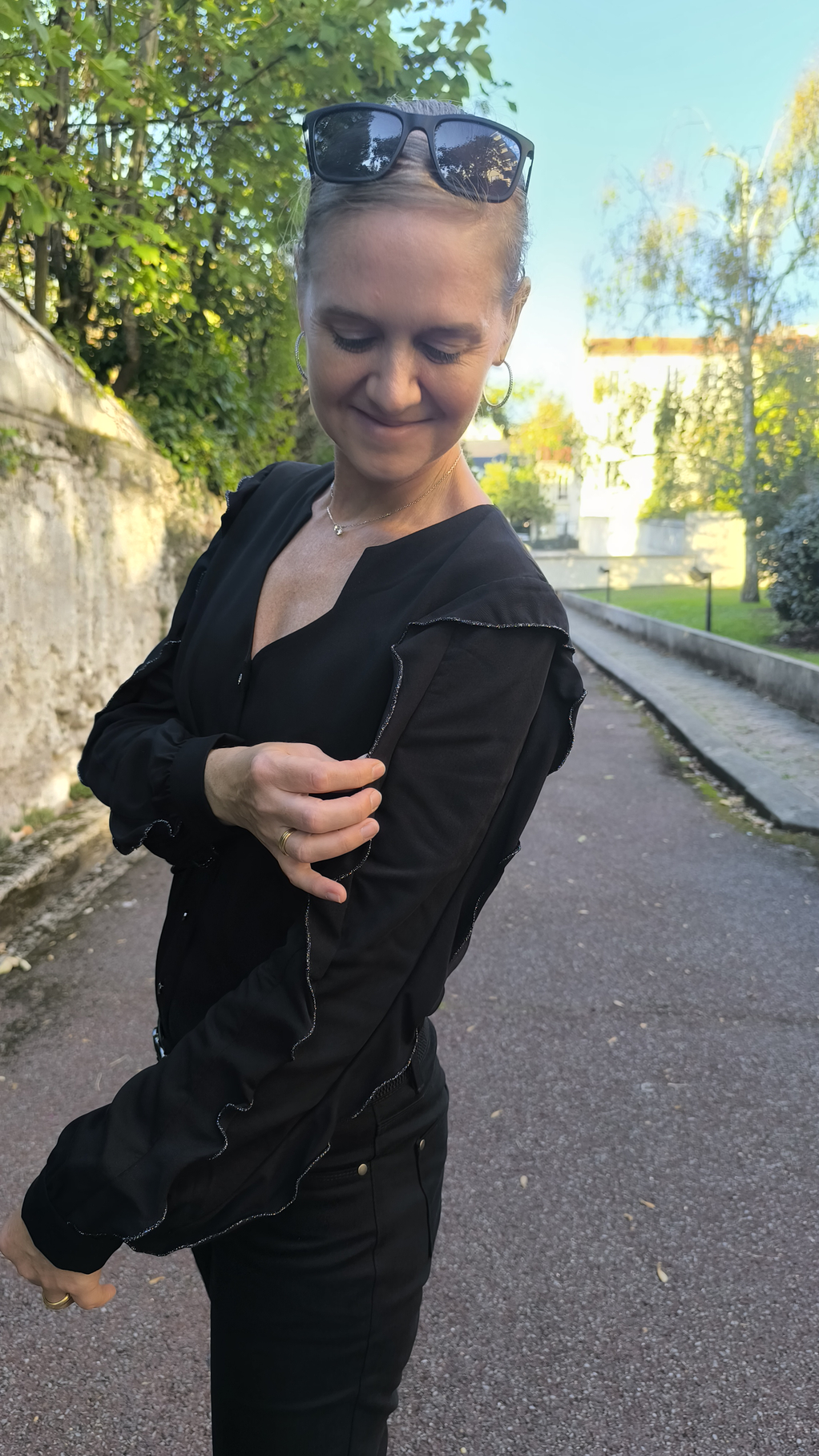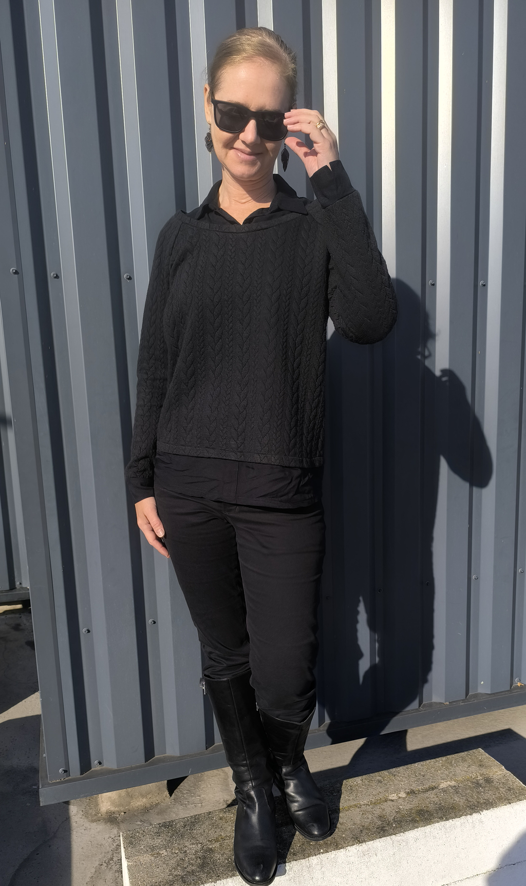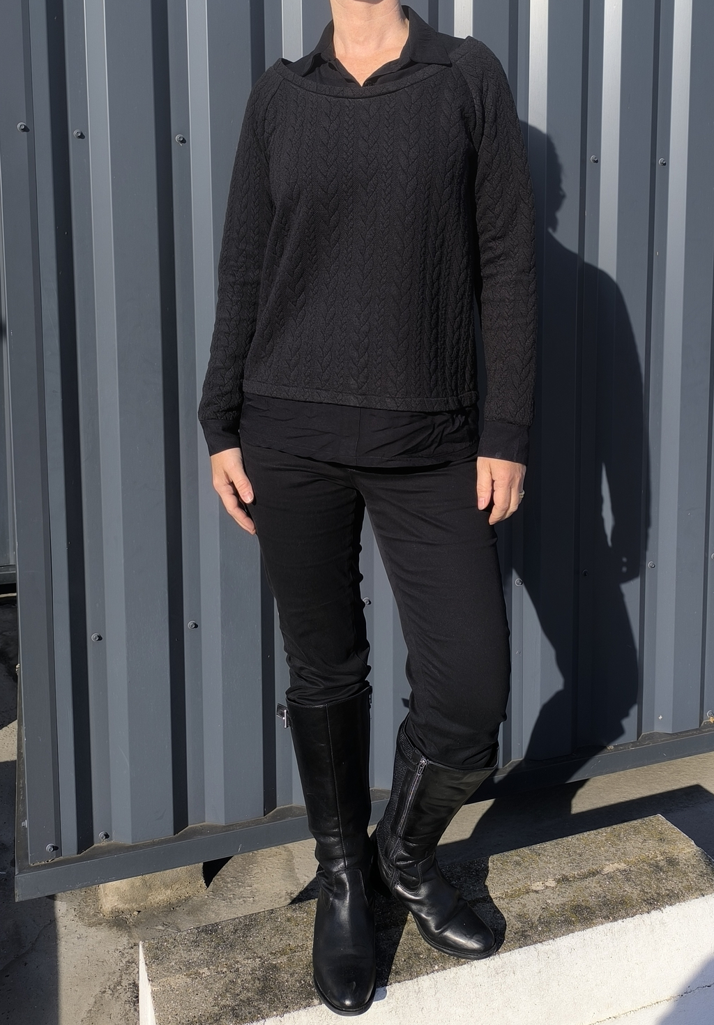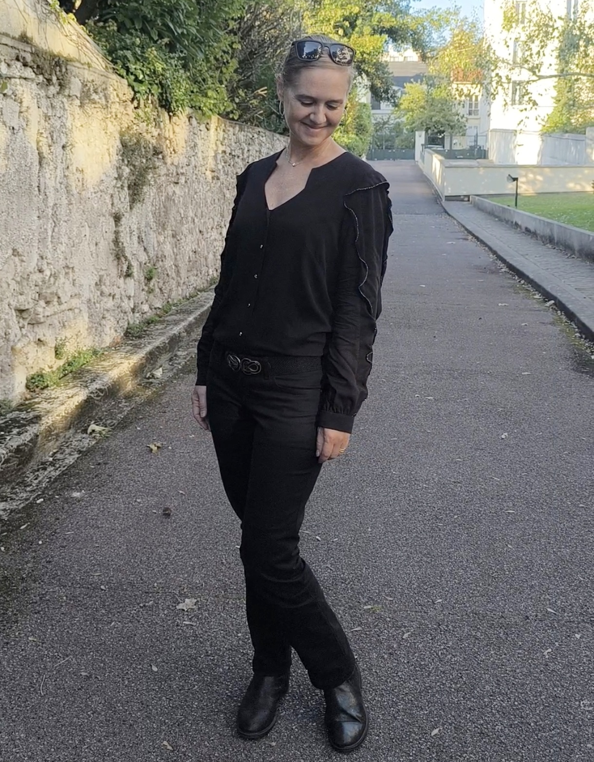 Et donc le 5ème cousu dans un denim noir que je vous montre ici dans différentes tenues. Attention, avalanche de photos !