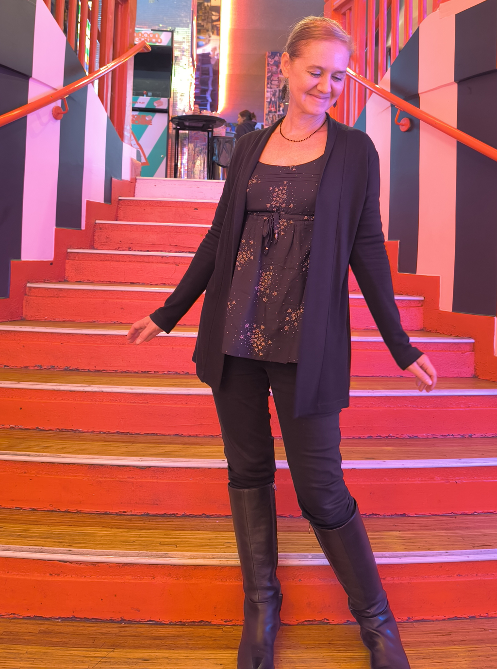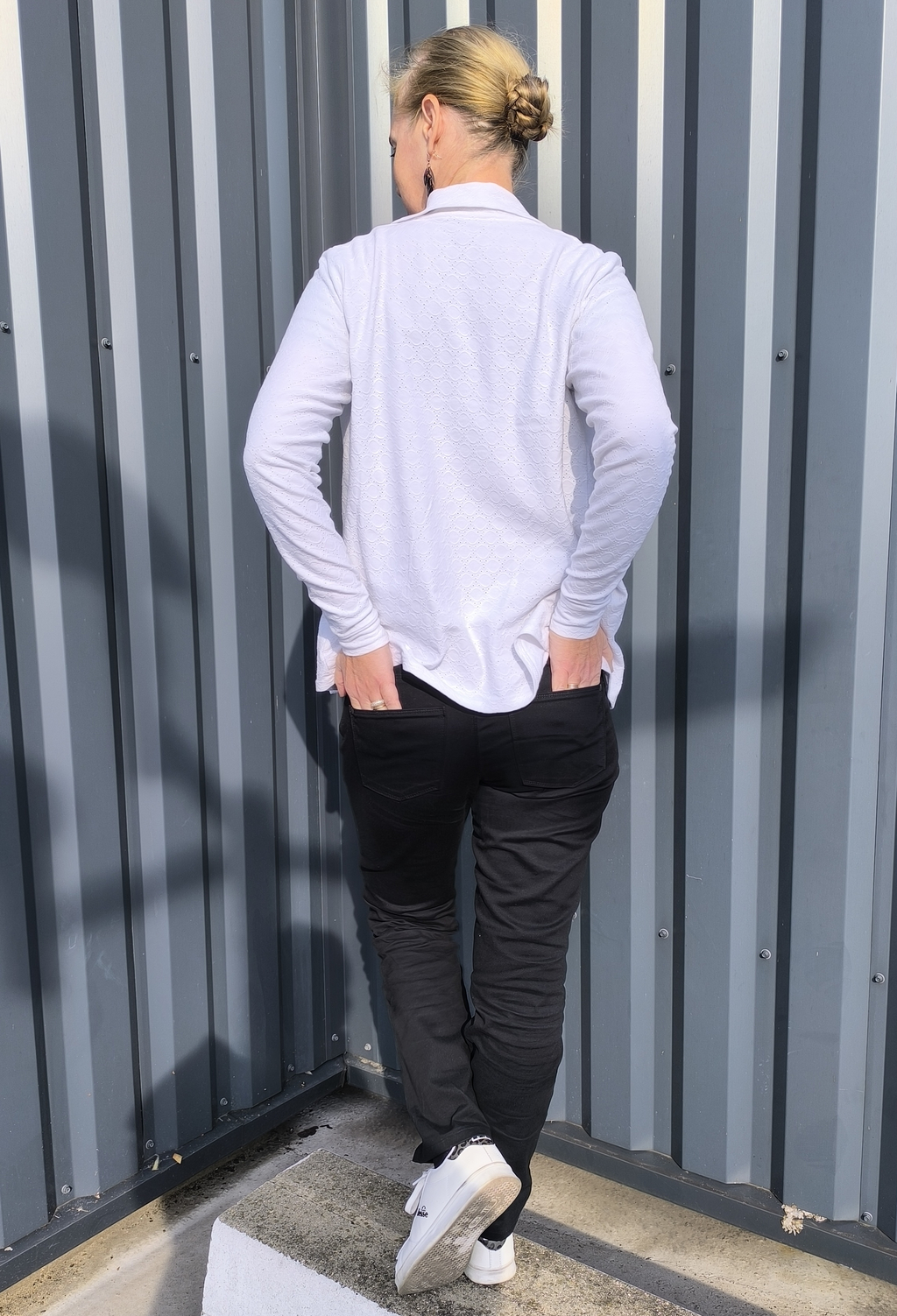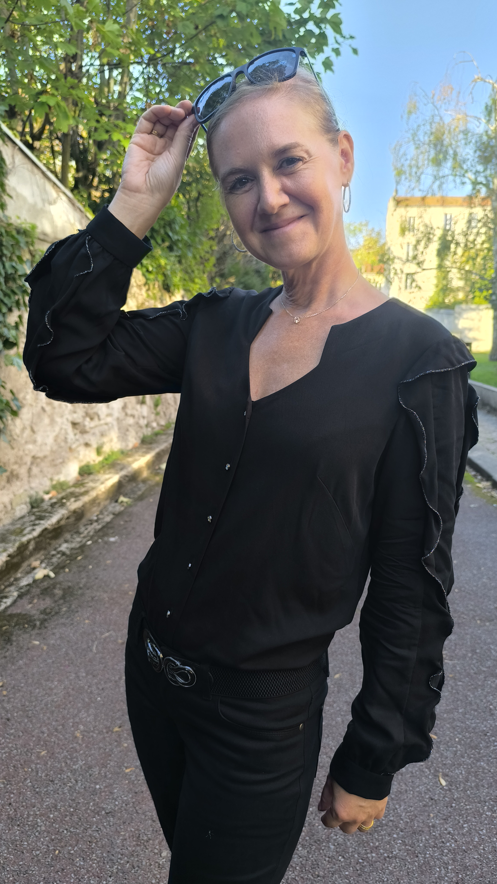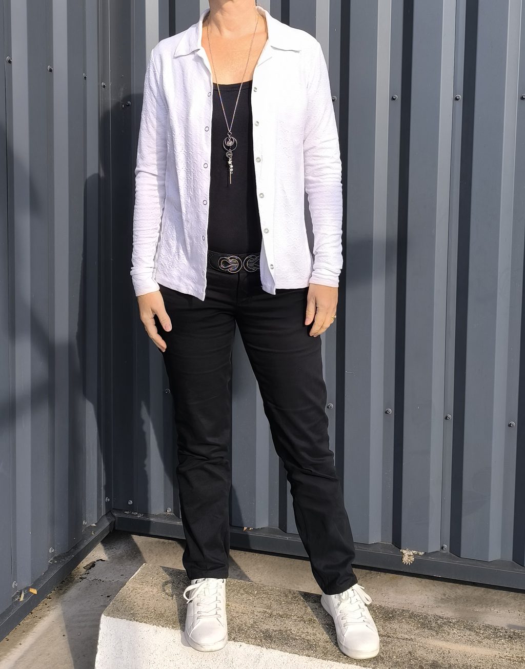 Et donc le 5ème cousu dans un denim noir que je vous montre ici dans différentes tenues. Attention, avalanche de photos !