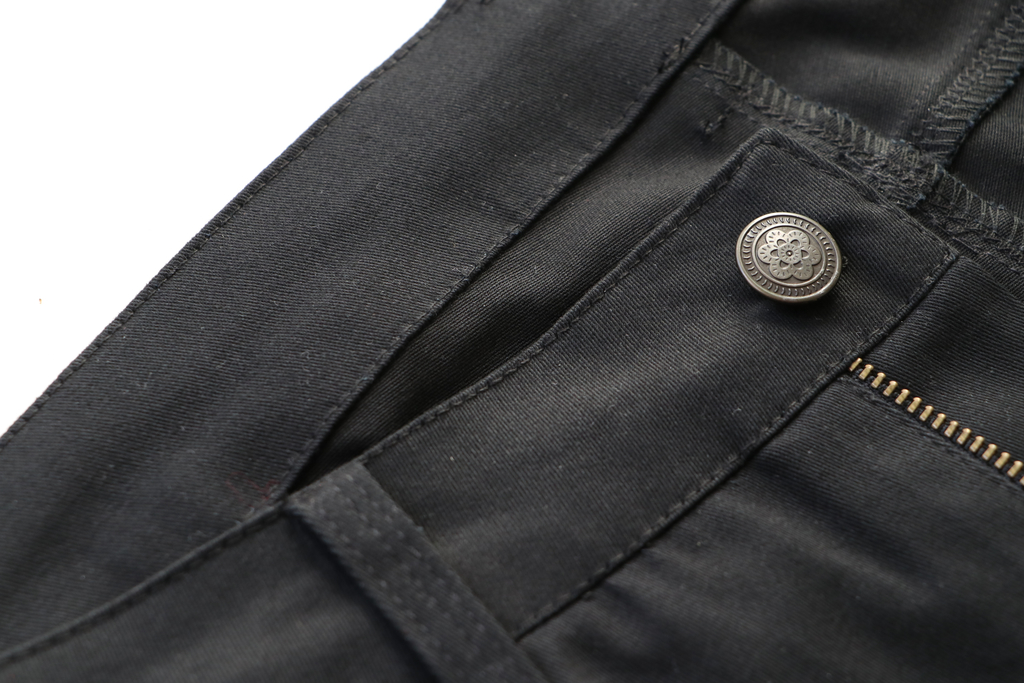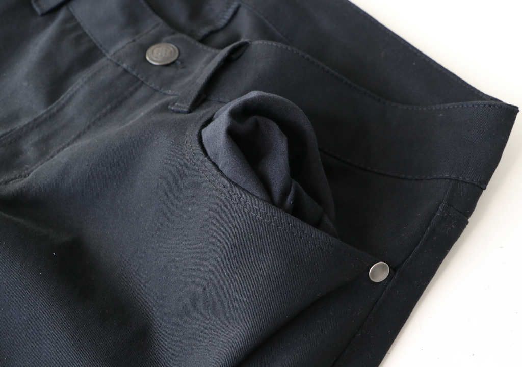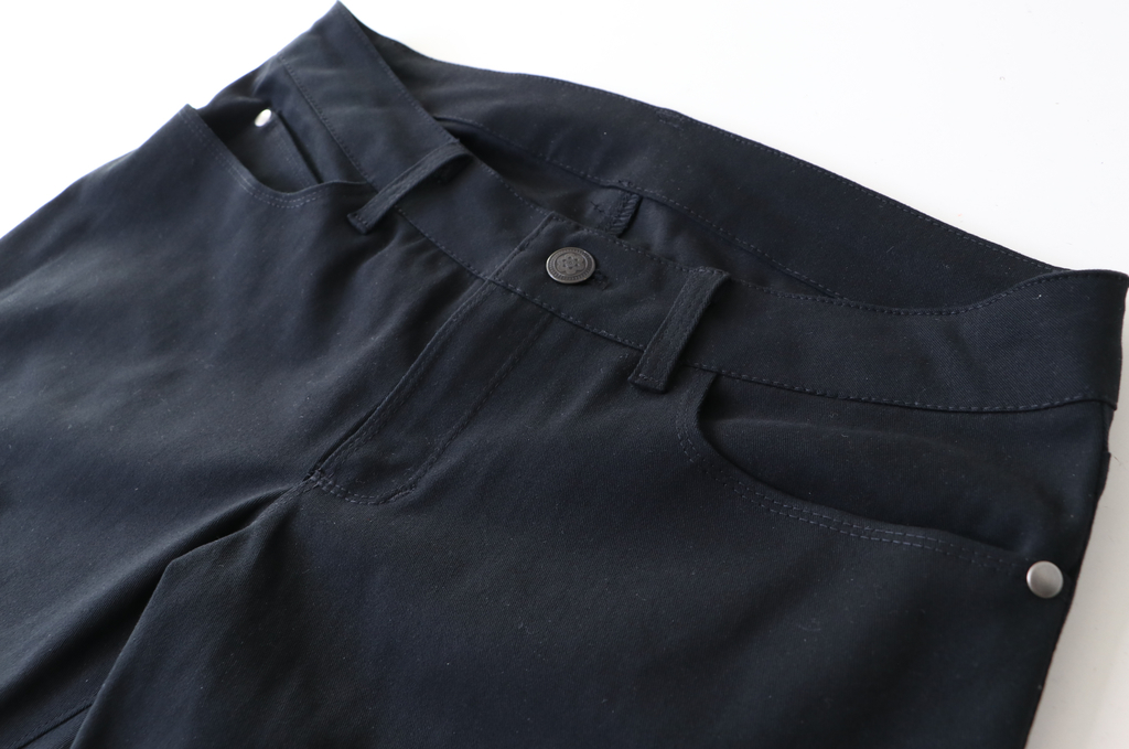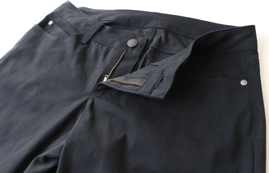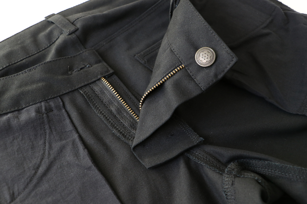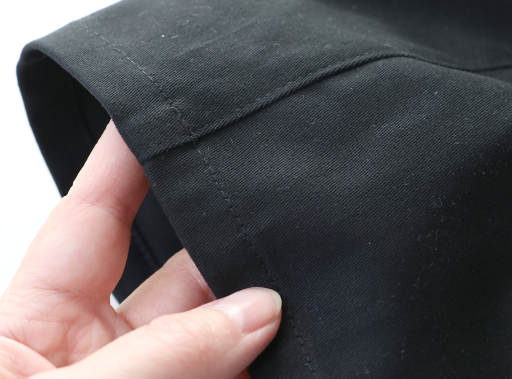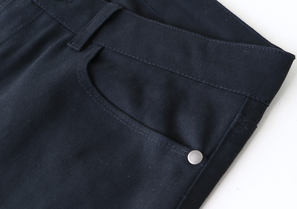 Côté tissu, il est préconisé d’utiliser un denim de poids moyen contenant au moins 2% d’élasthanne ou ayant au moins 20% d’élasticité. J’ai donc choisi ici une gabardine noire avec 3% d’élasthanne achetée chez Mondial Tissus mais offerte par mon cher & tendre : 13,99€ le mètre. Ca faisait un moment que je cherchait un denim / gabardine d’une épaisseur correcte et surtout d’un noir bien profond, je suis ravie de mon achat bien que cette gabardine ait tendance à chopper toutes les poussières. Je précise par ailleurs que je n’ai pas lavé ce tissu (trop peur des marbrures et que le noir perde de sa splendeur). Par contre, je l’ai minutieusement bien décati au fer !