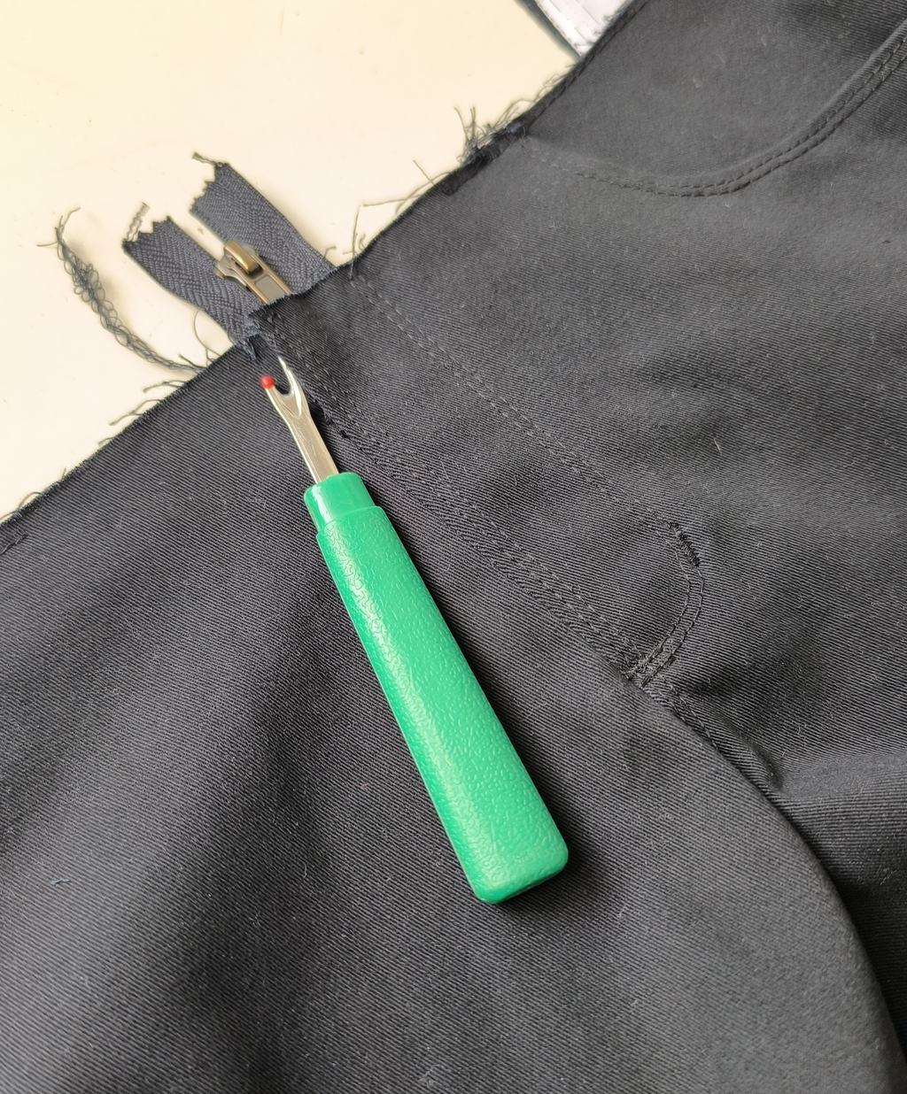 La braguette en cours de couture : le fameux moment ou on utilise le découd-vite pour retirer les points de bâti… et voir si la braguette est réussie ou pas… J’avais eu de sacrées sueurs froides pour mon jean flare…