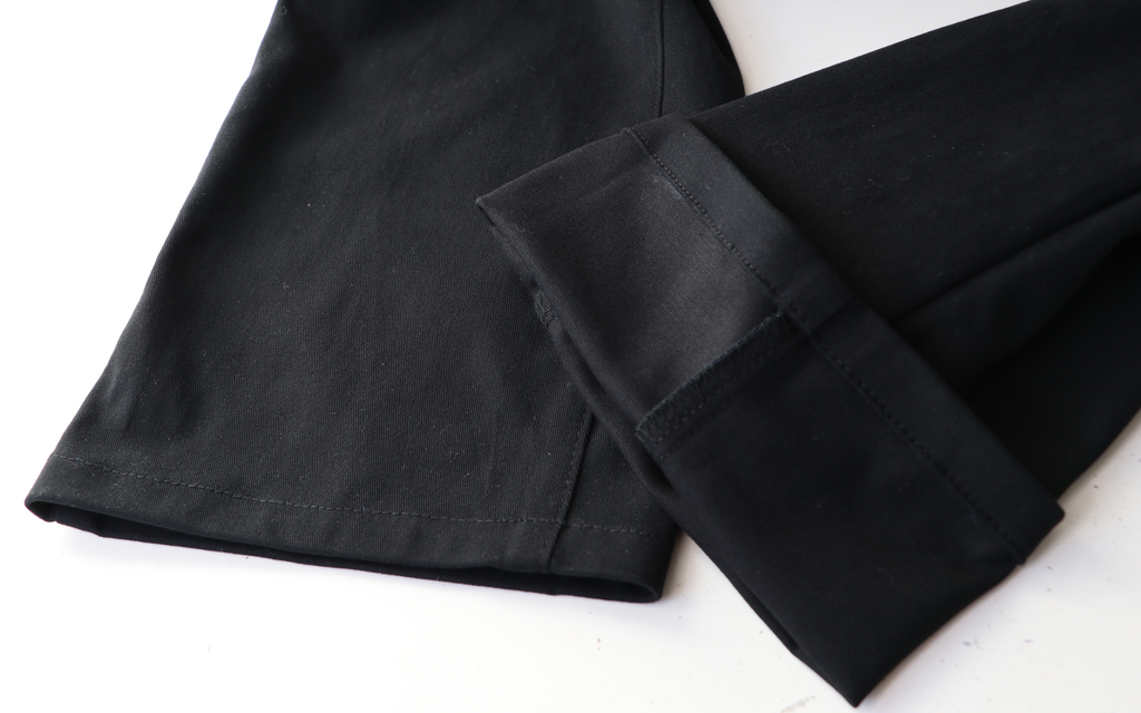 Le bas du jean est fini par un double rentré d’1,5 cm :