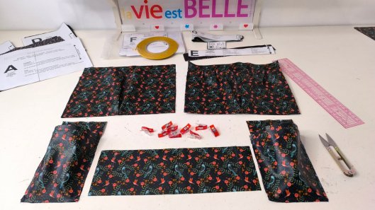 Dans ce coupon, j’ai réussi à caser une trousse rectangulaire toute simple (patron maison) et une pochette zippée Cristal toujours de chez Dehem Créations.