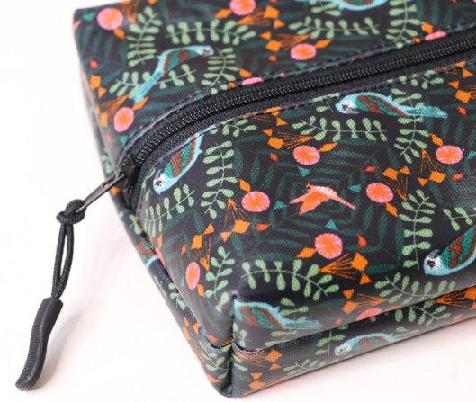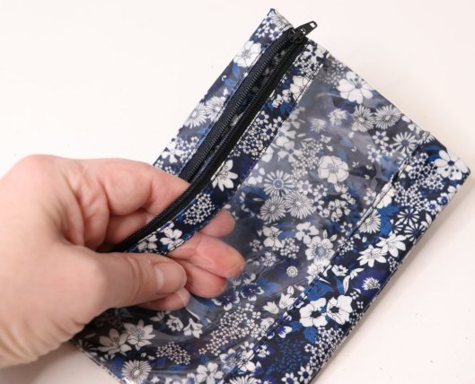 Dans les chutes du coton enduit, j’ai réussi à caser cette trousse rectangulaire zippée :