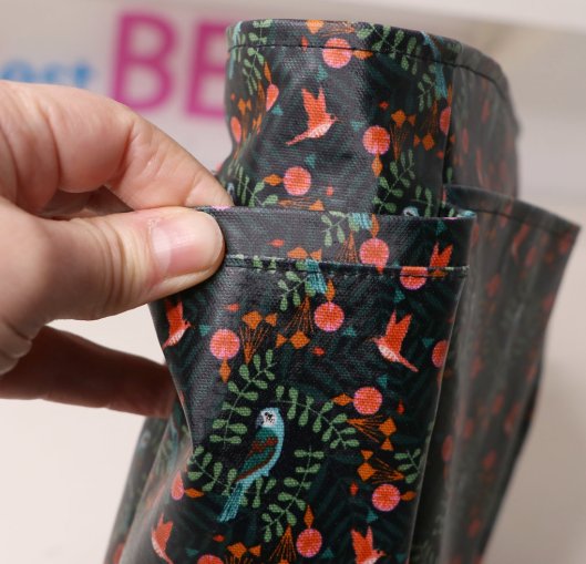 Perso, je n’ai pas eu de difficultés pour coudre cette trousse si ce n’est la gestion du coton enduit qui est plus délicat à coudre et plus épais qu’un tissu classique. Mais il est vrai que je n’en suis pas à ma première trousse… A noter que ce modèle demande du temps mais ça en vaut vraiment la peine ! J’ai passé un très bon moment couture, c’est une réalisation très satisfaisante et gratifiante !
