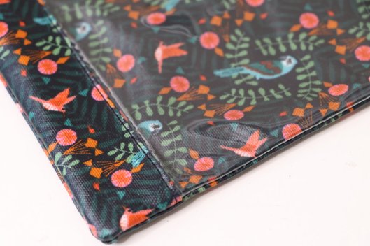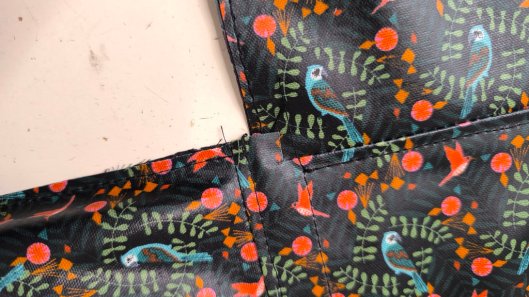 J’ai réalisé mon Triôtin dans un coton enduit de chez Papa pique et maman coud. C’est le motif Birdy mais il est à présent en rupture de stock… Je l’avais acheté en promotion l’année dernière à -30% : 7,35€ le coupon de 50 cm au lieu de 10,50€. Ce tissu est de belle qualité, il est assez épais et résistant, parfait pour mon organisateur de sac.
