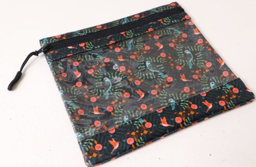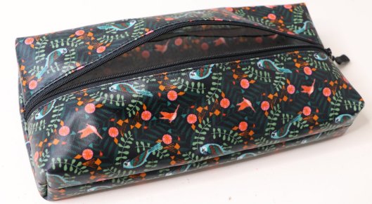 Dans les chutes du coton enduit, j’ai réussi à caser cette trousse rectangulaire zippée :