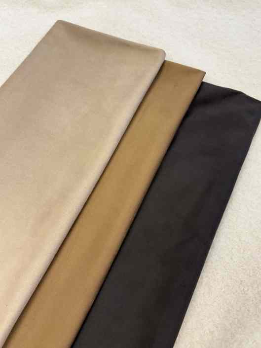 J’ai cousu ma veste dans une suédine couleur cacao achetée à La Tissuthèque LR (boutique éphémère ouverte à Paris pendant le CSF 2025) : 18,90€ le mètre pour cette suédine double face de belle qualité. Cette suédine existe en trois coloris :