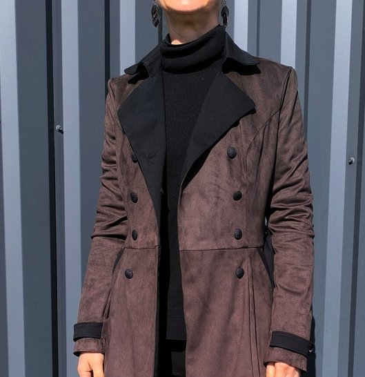 Cette suédine étant double-face et ce trench n’étant pas doublé, le risque de tâcher mes vêtements est donc grand… Heureusement que je porte beaucoup de noir au quotidien… Par précaution, j’éviterai de porter cette veste par temps de pluie ou lorsqu’il fait trop chaud, afin d’éviter toute mauvaise surprise (transpiration, humidité…). Je me demande si un passage au pressing pourrait arranger les choses. Qu’en pensez-vous ?