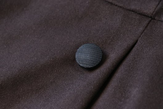 Voici donc ma veste avec ses boutonnières et ses boutons. Comme j’ai allongé le buste, j’ai ajouté une boutonnière supplémentaire.