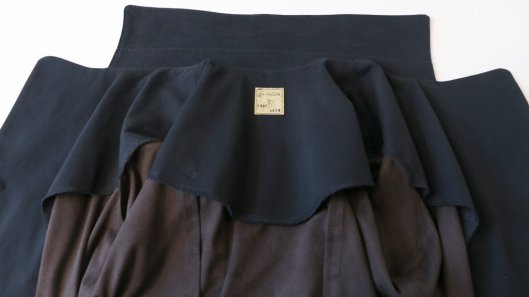 Ici j’ai opté pour des marges de coutures simplement surfilées. Le résultat me convient très bien ainsi. La pose de biais pour ganser toutes les coutures d’assemblage aurait été de toute façon trop fastidieux… A noter que les marges de couture sont de 1,5 cm ce que je trouve peu esthétique, j’aurais dû les réduire avant de les surfiler…
