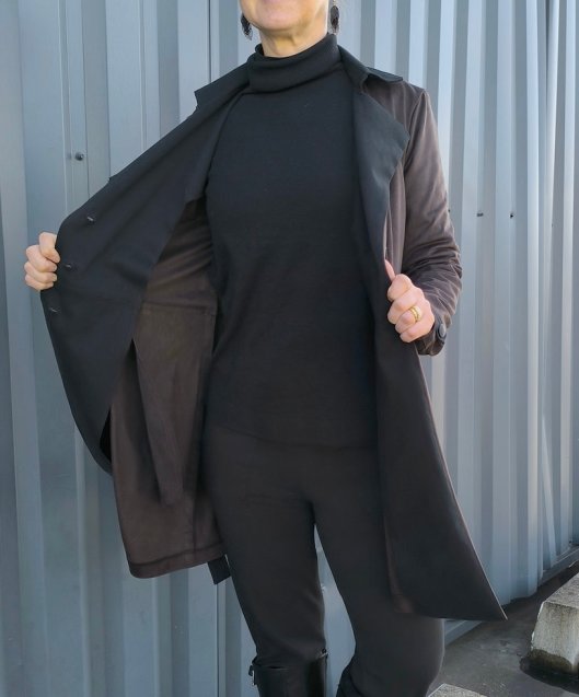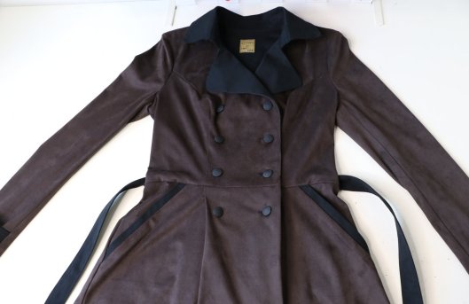 Cette suédine étant double-face et ce trench n’étant pas doublé, le risque de tâcher mes vêtements est donc grand… Heureusement que je porte beaucoup de noir au quotidien… Par précaution, j’éviterai de porter cette veste par temps de pluie ou lorsqu’il fait trop chaud, afin d’éviter toute mauvaise surprise (transpiration, humidité…). Je me demande si un passage au pressing pourrait arranger les choses. Qu’en pensez-vous ?