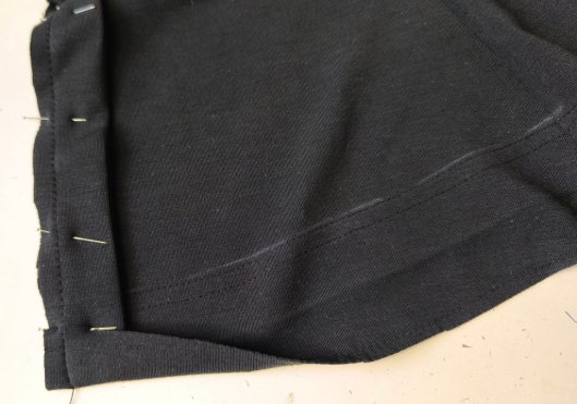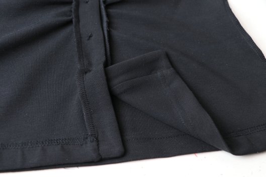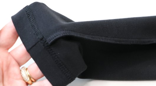 Les manches longues sont finies par un ourlet de 2 cm que j’ai réalisés à la recouvreuse :