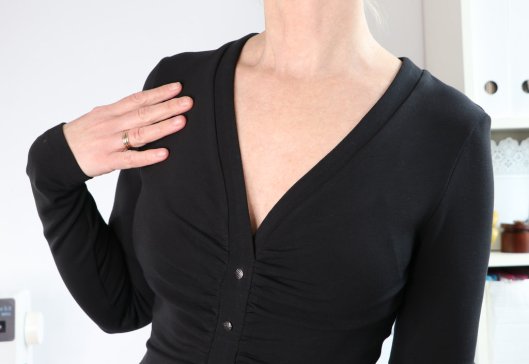 Au porté il est vraiment plus serré/moulant/gainant que ma première version que j’avais cousue dans un jersey très fin et surtout très extensible. Voici ma vieille version de 2013 (qui n’existe plus) :