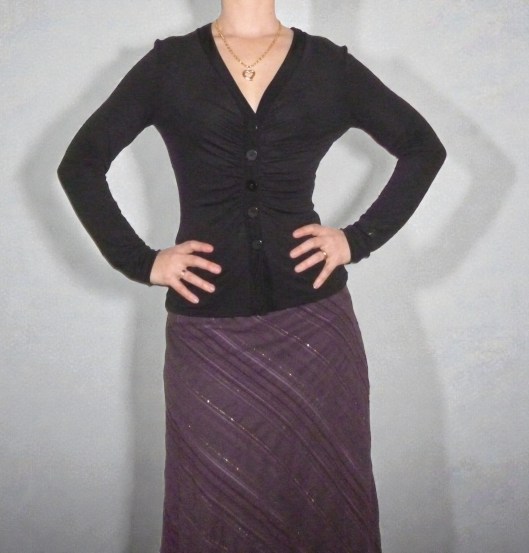 Au porté il est vraiment plus serré/moulant/gainant que ma première version que j’avais cousue dans un jersey très fin et surtout très extensible. Voici ma vieille version de 2013 (qui n’existe plus) :