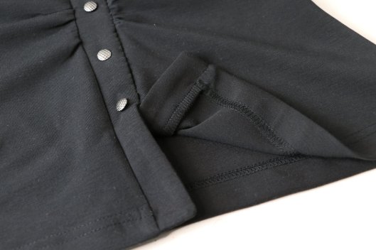 Du coup, comme ça tirait sur les coutures du milieu devant, j’ai préféré fermer définitivement la patte de boutonnage afin que celle-ci ne s’ouvre plus au moindre mouvement…