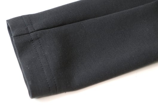 Les manches longues sont finies par un ourlet de 2 cm que j’ai réalisés à la recouvreuse :