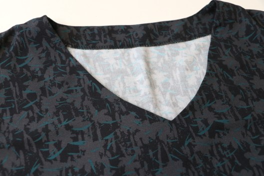 L’encolure est finie par une parementure. Je l’ai sous-piquée pour qu’elle puisse bien rester plaquée sur l’intérieur.