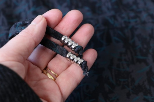 Le lien à nouer au bout duquel j’ai cousu un élastique :