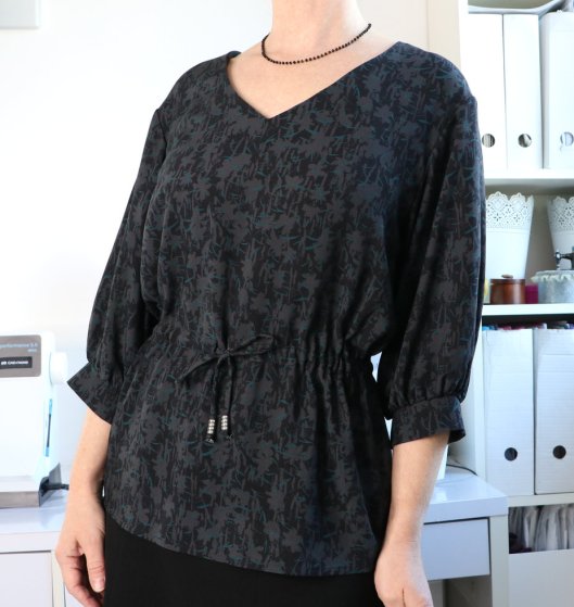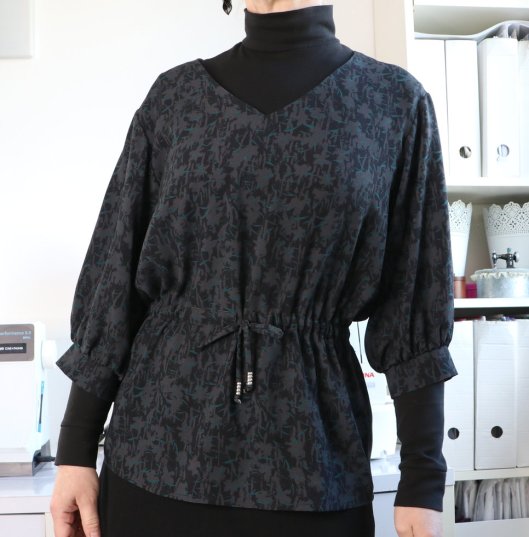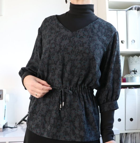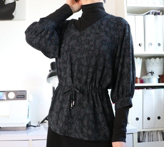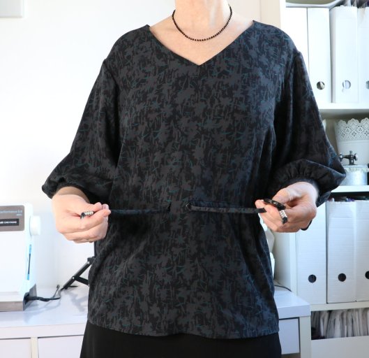 La blouse est ample, il y a de l’aisance. Voici ce que ça donner avant de resserrer la taille :