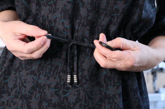 La blouse est ample, il y a de l’aisance. Voici ce que ça donner avant de resserrer la taille :