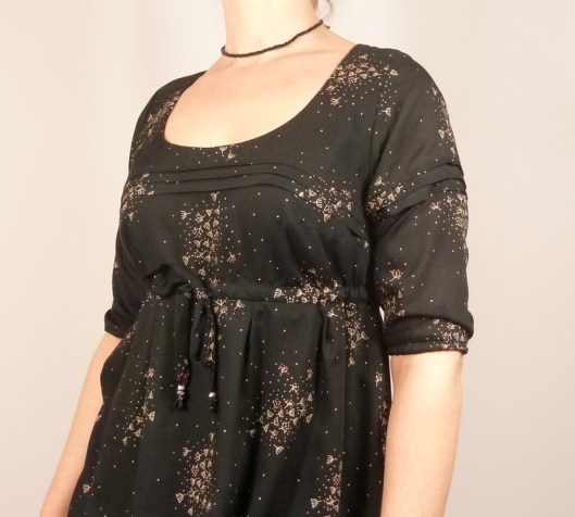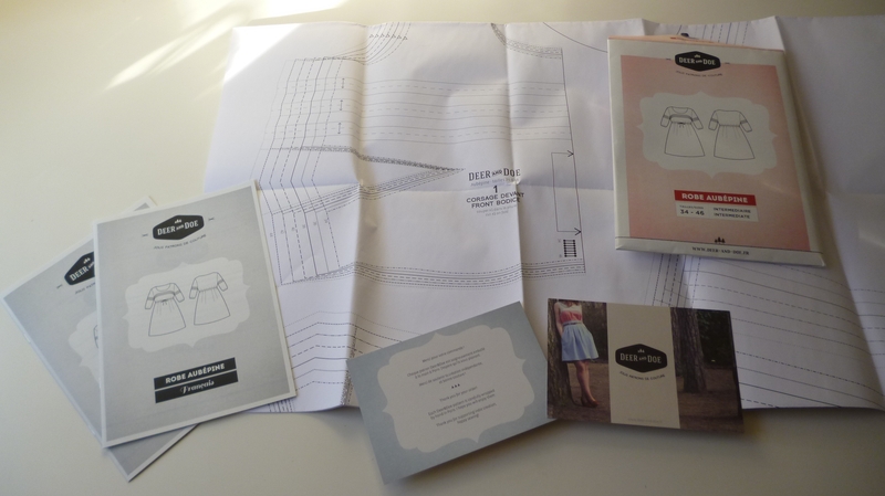 Aubépine est le nom donné au tout dernier patron de la marque Deer & Doe. Dès le premier jour de sa mise en vente, je l’ai acheté ! J’aime tout dans cette robe : la taille empire (forme idéale pour les morphologies en A), les petites manches, la jupe évasée, l’encolure décolletée, les poches prises dans les coutures, les plis religieuses sur le haut du corsage et des manches, le lien à nouer sous la poitrine.